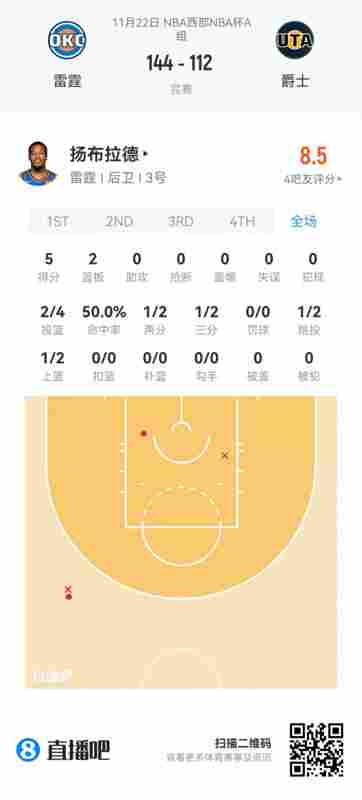 雷霆落選秀克里斯·揚布拉德 登場4.8分鐘