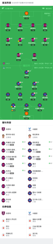第44分鐘,打破僵局,穆尼奧斯后點包抄頭球破門,水晶宮1-0