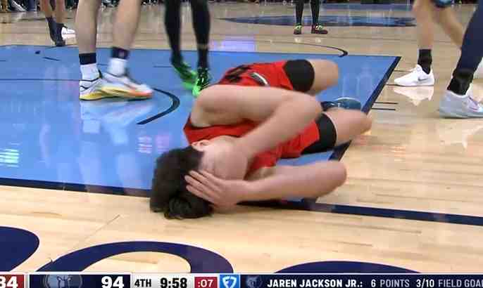 楊瀚森遭遇包夾被埃迪打到面部痛苦倒地 在地上躺了半天沒起來